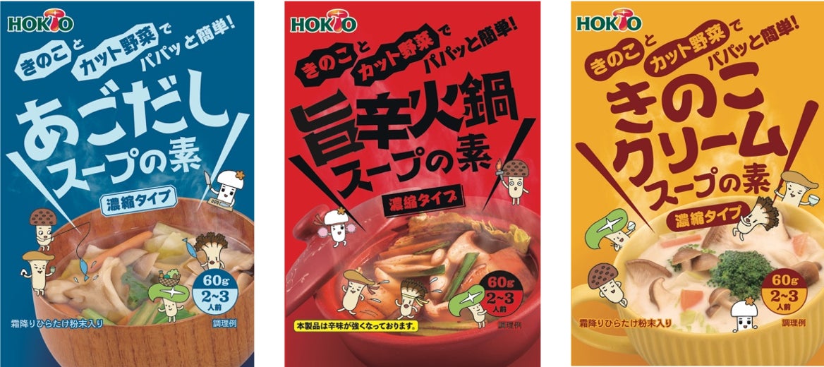 きのこ総合企業のホクト株式会社(所在地:長野県長野市、代表取締役社長 水野雅義)は、2023年11月7日(火)より、ご家庭で本格的な味わいを手軽に楽しめる「スープの素(濃縮タイプ)」の全国販売を開始いたします。このスープの素は、きのことカット野菜などの具材を入れるだけで、パパッと簡単に美味しいスープを調理できる便利な商品で、和洋中の3つのバリエーションが用意されています。